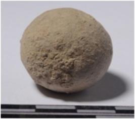 | Description / विवरण | A stone sling ball, round in shape of smooth surface. |