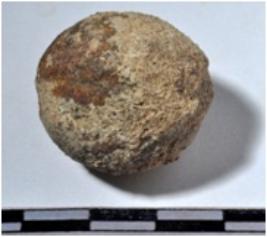 | Description / विवरण | A stone sling ball round in shape of rough surface. |