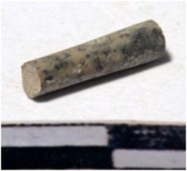 | Description / विवरण | A fragment of a stone drill bit, circular in section, broken from both ends of smooth surface. |