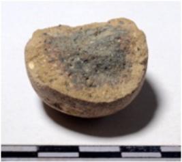| Description / विवरण | A fragment of a stone sling ball rough in shape of rough surface. |