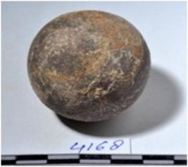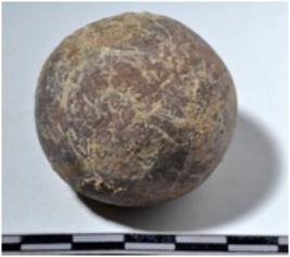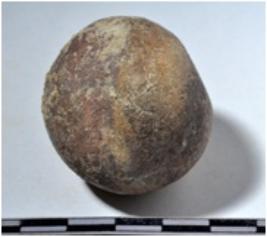 | Description / विवरण | A stone sling ball round in shape of rough surface. |
