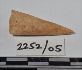 | Description / विवरण | A fragment of a bone point having pointed one side of polished surface. |