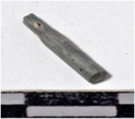 | Description / विवरण | A fragment of a stone drill bit circular in section, broken from one end of smooth surface. |