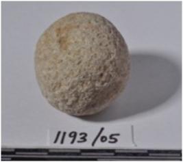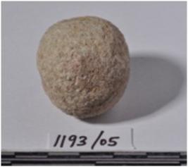 | Description / विवरण | A stone sling ball round in shape of rough surface. |