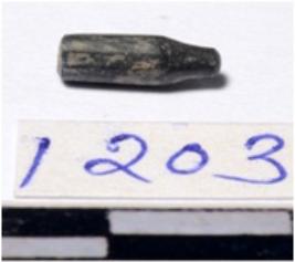 | Description / विवरण | A fragment of a stone drill bit circular in section pointed on one end of smooth surface. |