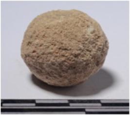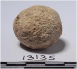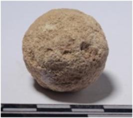 | Description / विवरण | A stone sling ball, round in shape of rough surface. |