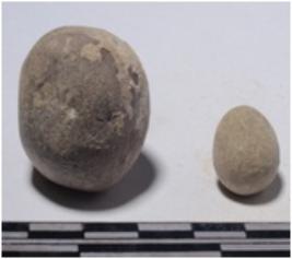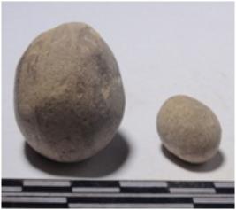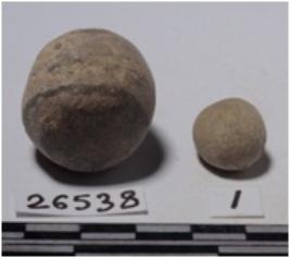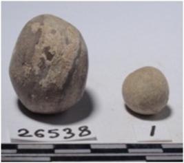 | Description / विवरण | A stone sling ball, round in shape of smooth surface. |