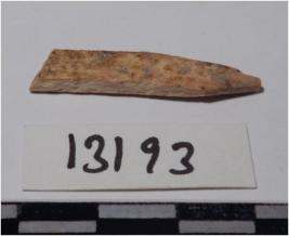 | Description / विवरण | A fragment of a bone point having pointed one end, rectangular in section of smooth surface. |