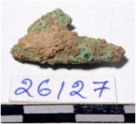 | Description / विवरण | A fragment of a copper arrow head triangular in shaep having pointed on one end of rough surface. |