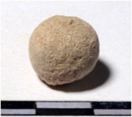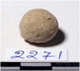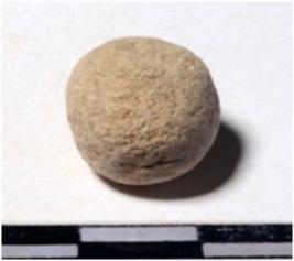 | Description / विवरण | A terracotta sling ball round in shape of smooth surface. |