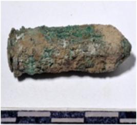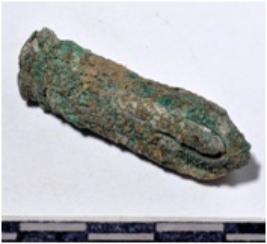 | Description / विवरण | A fragment of a copper nail circular in section broken from both end of rough surface. |