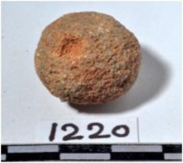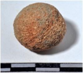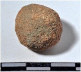 | Description / विवरण | A stone sling ball, round in shape of rough surface. |