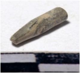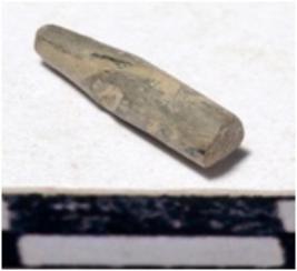 | Description / विवरण | A fragment of a stone drill bit, circular in section, broken from both ends of smooth surface. |