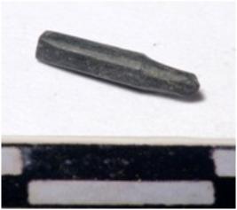 | Description / विवरण | A fragment of a stone drill bit circular in section broken from one end of smooth surface. |
