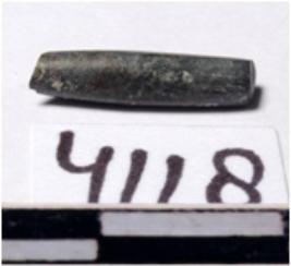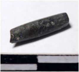 | Description / विवरण | A fragment of a stone drill bit circular in section broken from one both of smooth surface. |