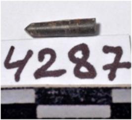 | Description / विवरण | A fragment of a stone drill bit, circular in section, broken from one end of smooth surface. |