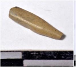 | Description / विवरण | A fragment of a stone drill bit, circular in section, broken from both end of smooth surface. |