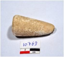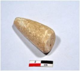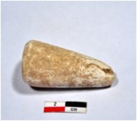 | Description / विवरण | A standard sized point of shell showing conical in shaped, broken from pointed end, having rough surface. |
