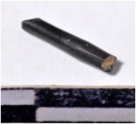 | Description / विवरण | A fragment of a stone drill bit, circular in section, broken from both end of smooth surface. |