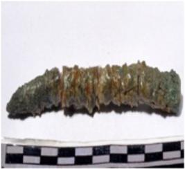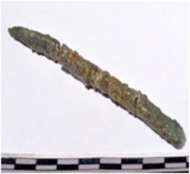| Description / विवरण | A fragment of a copper chisel cum point, pointed one end, other sharpened end, square in section of rough surface. |