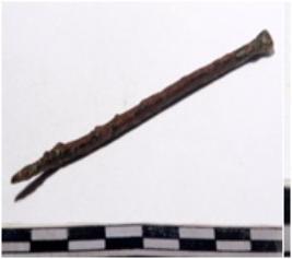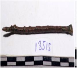 | Description / विवरण | A fragment of a copper rod one end pointed of smooth surface. |