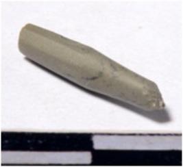 | Description / विवरण | A fragment of a stone drill bit circular in section broken from one end of smooth surface. |