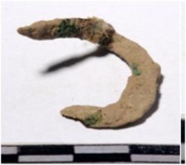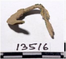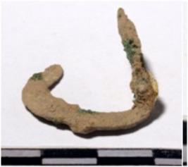 | Description / विवरण | A fragment of a copper hook bent one side of rough surface. |
