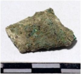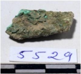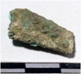 | Description / विवरण | A fragment of a copper arrow head triangular in shape pointed on one end of rough surface. |