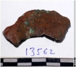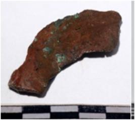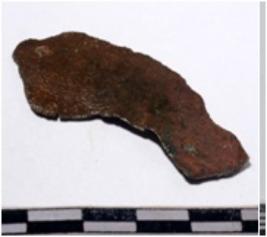 | Description / विवरण | A fragment of a copper blade curved in shape of rough surface. |