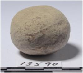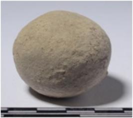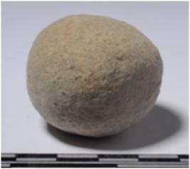 | Description / विवरण | A stone sling ball, round in shape and smooth surface. |