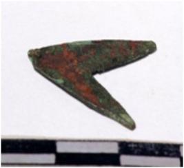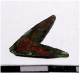 | Description / विवरण | A copper arrow head triangular in shape pointed at one end of smooth surface. |