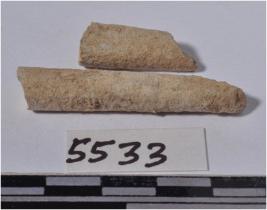 | Description / विवरण | A fragment of a bone point having broken edge, circular in section of rough surface. |