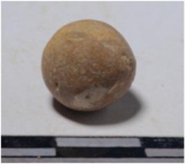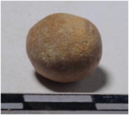 | Description / विवरण | A terracotta small sling ball round in shape, of smooth surface. |