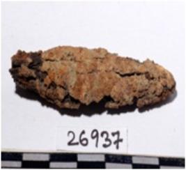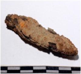 | Description / विवरण | A fragment of a iron spear head, pointed one end, oval in section of rough surface. |