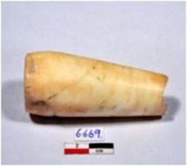 | Description / विवरण | A standard sized shell point, conical in shaped, broken from one end, having smooth surface. |