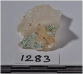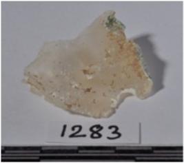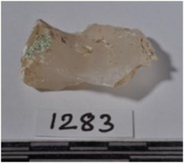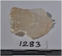 | Description / विवरण | A chalcedony flake irregular cutting edges and cortex visible on surface. |