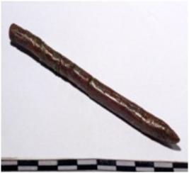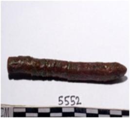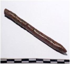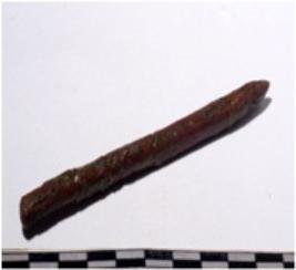 | Description / विवरण | A copper mended nail circular in section pointed at one end of smooth surface. |