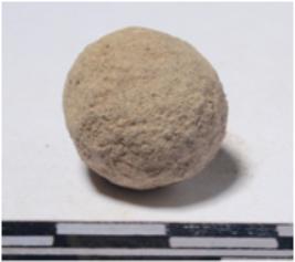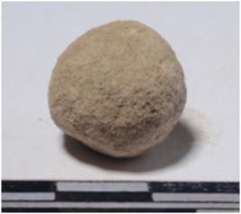 | Description / विवरण | A stone sling ball, round in shape of rough surface. |
