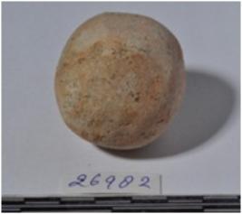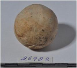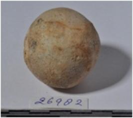 | Description / विवरण | A stone sling ball round in shape of rough surface. |