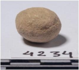 | Description / विवरण | A small stone sling ball, round in shape of rough surface. |