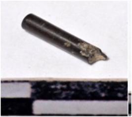 | Description / विवरण | A fragment of a stone drill bit, circular in section broken both end of smooth surface. |