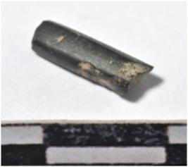 | Description / विवरण | A fragment of a stone drill bit circular in section broken from both end of smooth surface. |