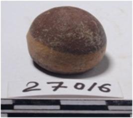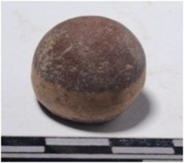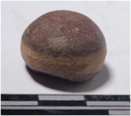| Description / विवरण | A fragment of a stone sling ball, round in shape of smooth surface. |
