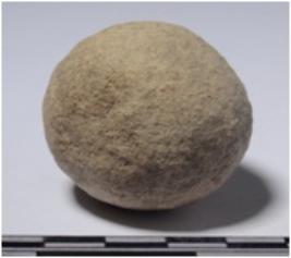 | Description / विवरण | 3.4x3.4 cm 64 grams A stone sling ball, round in shape of rough surface. |