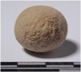 | Description / विवरण | A stone sling ball, round in shape of smooth surface. |