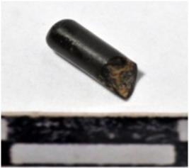 | Description / विवरण | A fragment of a stone drill bit, circular in section broken from both end of smooth surface. |