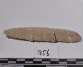 | Description / विवरण | A fragment of a bone point, pointed both end, circular in section and rough surface. |