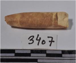 | Description / विवरण | A fragment of a bone point having pointed one side, circular in section of smooth surface. |