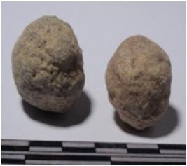 | Description / विवरण | A stone sling ball round in shape of rough surface. |