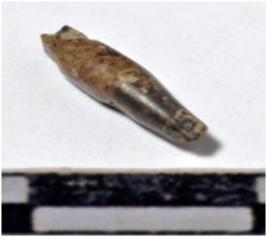 | Description / विवरण | A fragment of a stone drill bit, circular in section, broken from one end of smooth surface. |